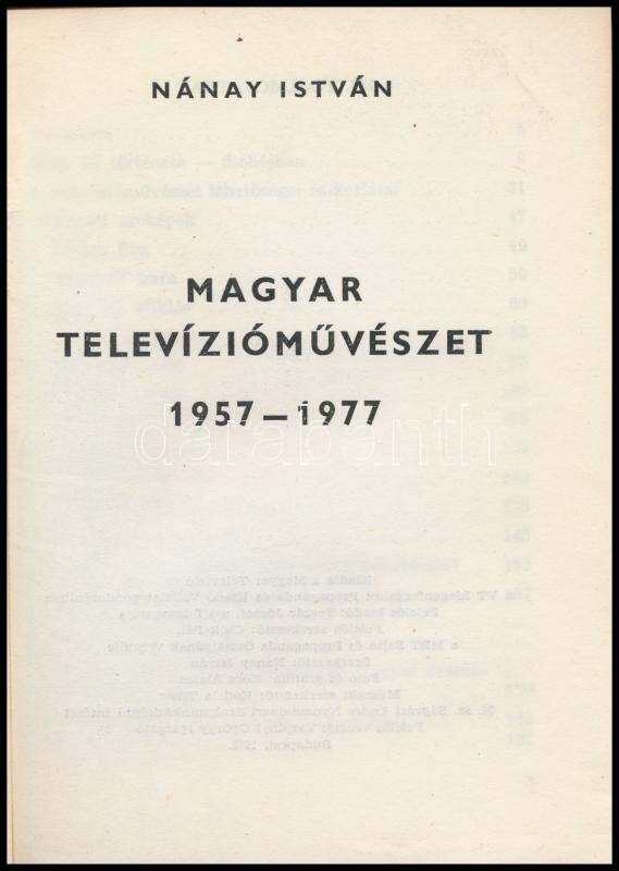 Nánay István: Magyar televízióművészet 1957-1977. Bp.,1978, Magyar Tel... https://www.darabanth.com/hu/326-Gyorsarveres/326.0/Konyvek/Konyvek-Epiteszet-muveszet~1500007/Nanay-Istvan-Magyar-televiziomuveszet-1957-1977-Bp-1978-Magyar-Televizio-Kiadoi-papir~II1792013