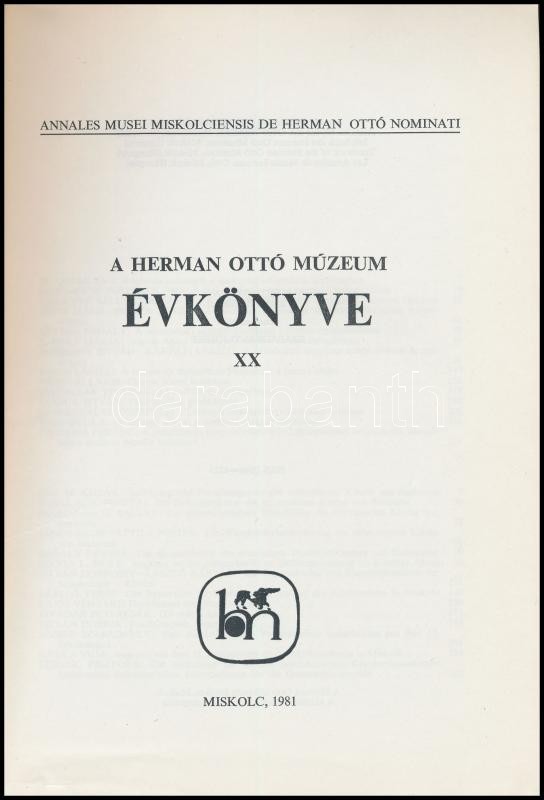 Leírás: A Hermann Ottó Múzeum évkönyve. XX. kötet. Szerk.: Szabadfalvi József. Miskolc, 1981, Hermann Ottó Múzeum. Kiadói papírkötés.