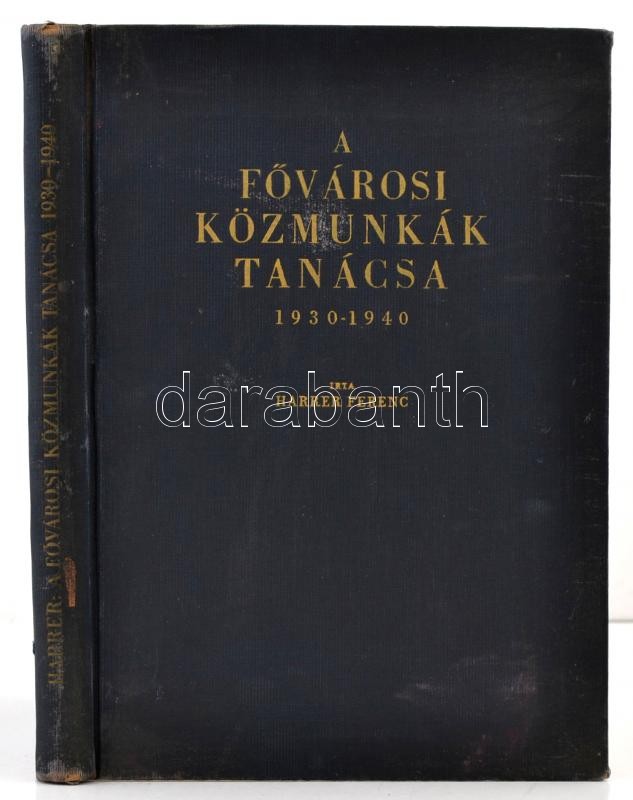 Leírás: Harrer Ferenc: A Fővárosi Közmunkák Tanácsa 1930-1940. Bp.,1941, Athenaeum. Kiadói aranyozott egészvászon-kötésben, kopott borítóval.