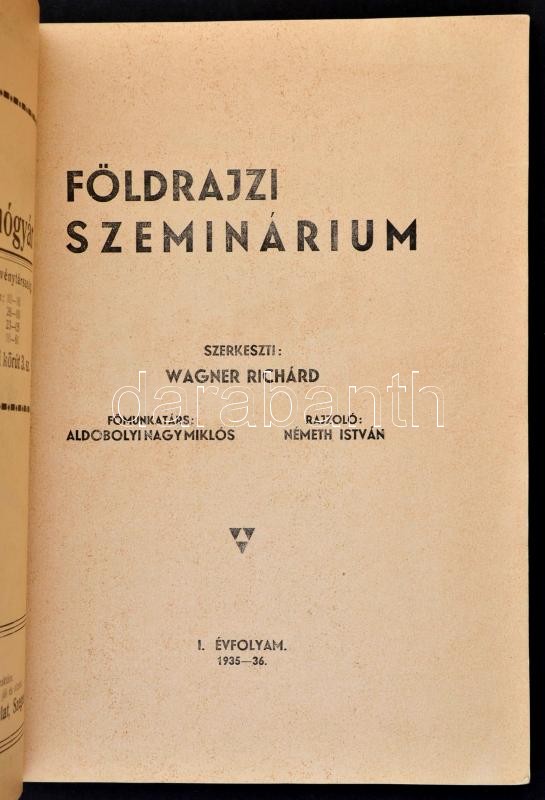 Vegyes, többségében vízrajzzal, hidrológiával kapcsolatos könyvtétel, 10 db: Várady Irén: Kárpátalja Bodrog és Felső-Tisza csapadékviszonyai. Szeged, 1939, Árpád Nyomda. Kiadói papírkötés. Dr. Schréter Zoltán: Az egri langyosvízű források. Bp.,1923, Bethlen Gábor. Kiadói papírkötés. Dr. Lengyel Béla: A rank-herleini és szejkei ásványvízek chemiai elemzése. Bp.,1880, MTA. Modern fűzésű kötésben, az eredeti papírborítót is bekötötték. Schreier Ferenc: Adatok a Buda-Pilisi hegység Nagykevély hegycsoportjának hidrológiai viszonyaihoz. Bp.,1932, M. Kir. József-Műegyetem. Kiadói papírkötés. Kalacsinszky Sándor: Naptól fölmelegedő sós tavak. (Szováta meleg-forró sós tavai.) Bp., 1904, Kir. M. Természettudományi Társulat. Modern fűzésű kötésben, az eredeti papírborítót is bekötötték, az elülső borítón kis hiánnyal. Gál Zoltán: A Tisza szabályozásával kapcsolatos morfológiai változások Hódmezővásárhely környékén. Bp.,1931, Athenaeum. Kiadói papírkötés. Ilosvay Lajos: A torjai büdös barlang levegőjének chemiai és fizikai vizsgálata. Bp.,1895, Kir. M. Természettudományi Társulat. Kiadói papírkötésben, a gerincen szakadással. Továbbá: Szabó István: A puszta talaja, Erdély ősemlős maradványai és az ősemberre vonatkozó leletei (9-158), 1935-1936 Földrajzi szeminárium I. évf. 7-10. sz.