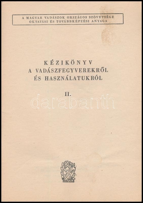 Leírás: Kézikönyv a vadászfegyverekről lés használatukról II. Bp. é.n. MAVOSZ. 56p.