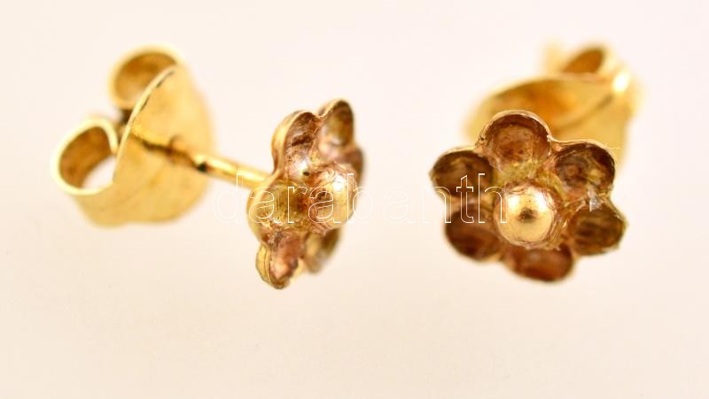 Leírás: Arany (Au) 14K virágos fülbevalópár, jelzett, h: 1,3 cm, nettó: 0,5 g