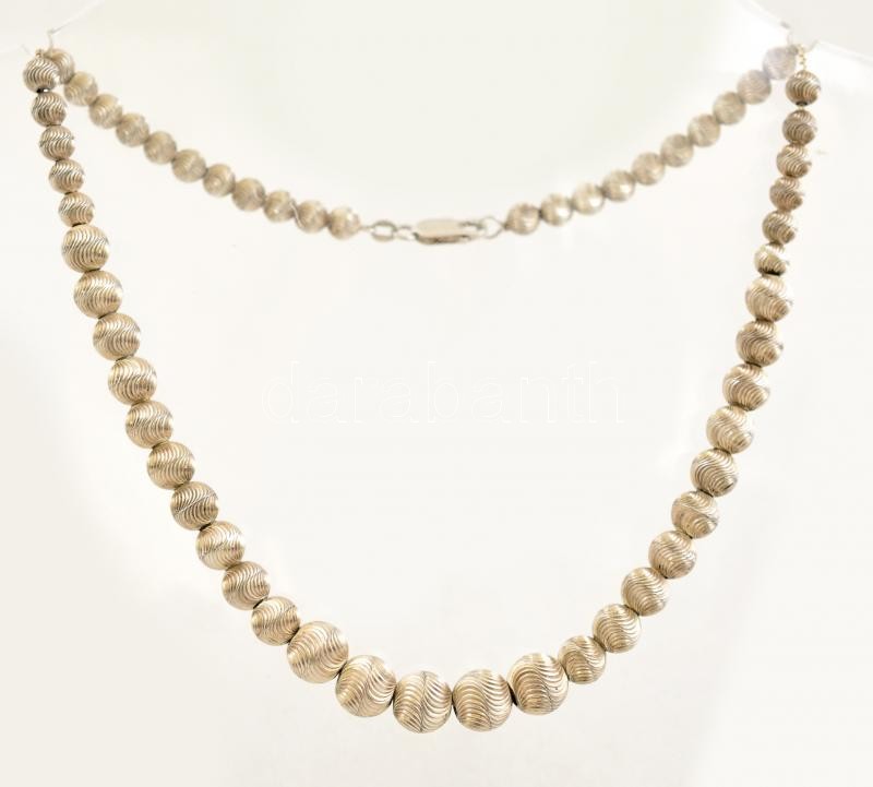 Leírás: Ezüst(Ag) gyöngymintás nyakék, jelzett, h: 43 cm, nettó: 28,4 g