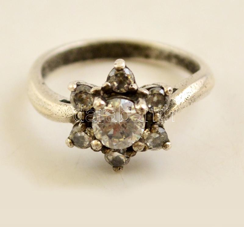 Leírás: Ezüst(Ag) virágos köves gyűrű, jelzett, méret: 50, nettó: 3 g