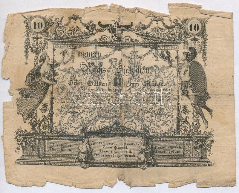Krause A136... https://www.darabanth.com/hu/326-Gyorsarveres/326.0/Numizmatika/Kulfoldi-bankjegyek~2000012/Ausztria-1851-10G-TIV-V-Austria-1851-10-Gulden-CG-Pr-Krause-A136~II1815332