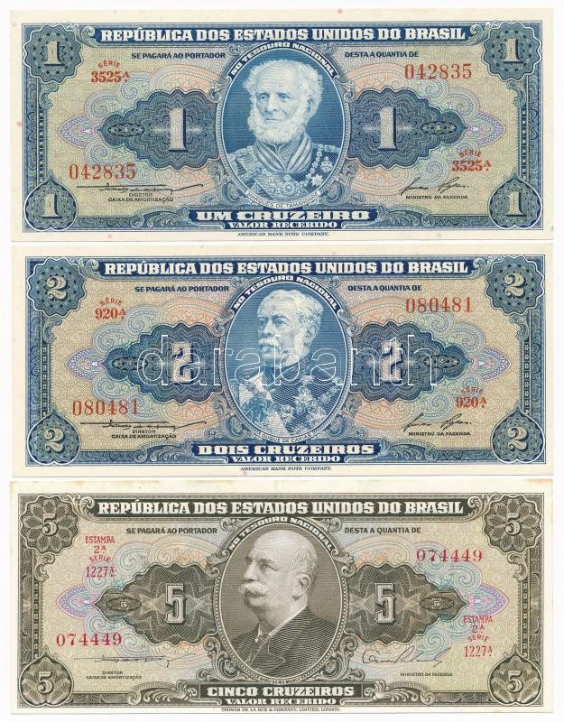 Brazil 1958. 1 Cruzeiros +... https://www.darabanth.com/hu/326-Gyorsarveres/326.0/Numizmatika/Kulfoldi-bankjegyek~2000012/Brazilia-1958-1C-plus-2C-plus-1954-5C-TI-fo-Brazil-1958-1-Cruzeiros-plus-2-Cruzeiros-plus-1954-5-Cruzei~II1814512