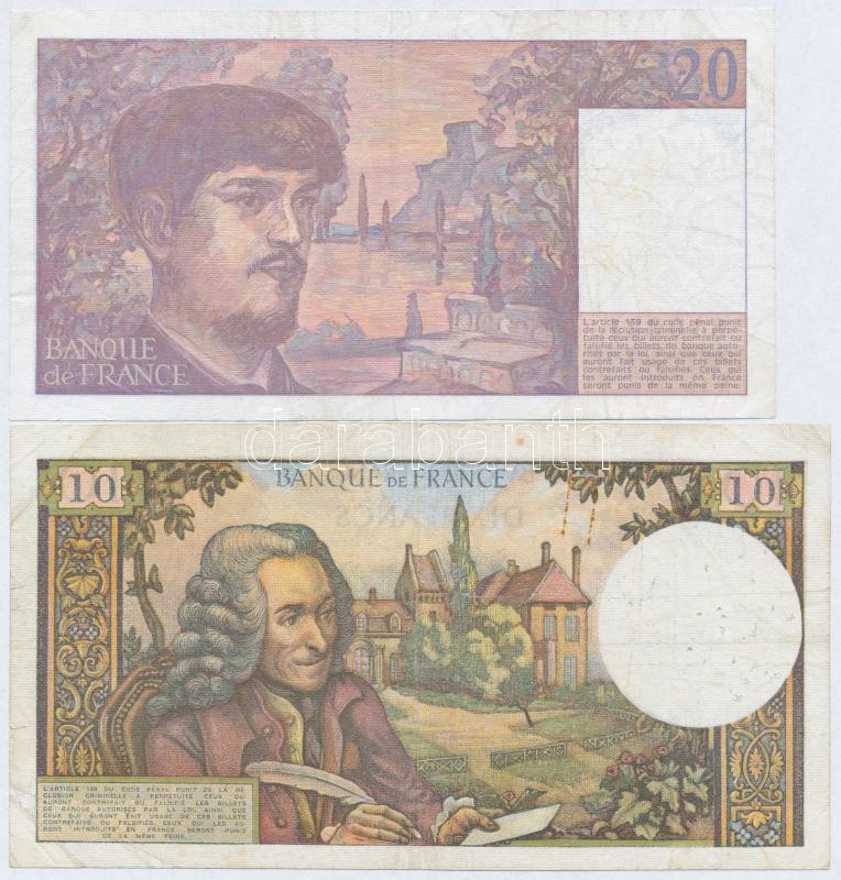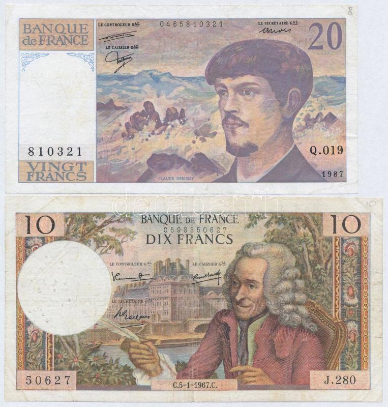 Franciaország 1967. 10Fr + 1987. 20Fr T:III tűlyukak