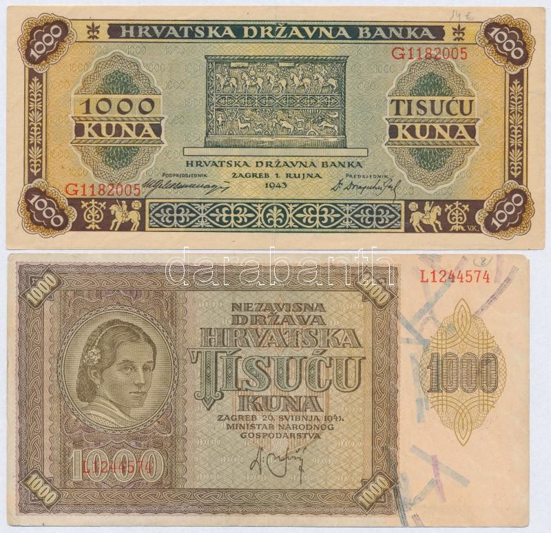 Független Horvát Állam 1941. 1000K + 1943. 1000K T:III
