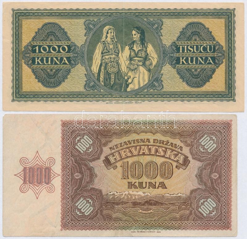 Independent St... https://www.darabanth.com/hu/326-Gyorsarveres/326.0/Numizmatika/Kulfoldi-bankjegyek~2000012/Fuggetlen-Horvat-Allam-1941-1000K-plus-1943-1000K-TIII-Independent-State-of-Croatia-1941-1000-K~II1812890
