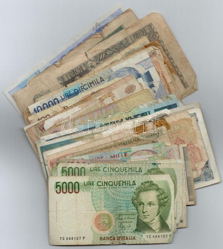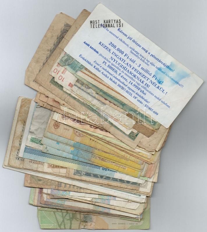 Vegyes: ~92db-os papírpénz tétel, nagyrészt lengyel és olasz bankjegyek, közte kevés bankjegy alakú reklámanyag T:III-V