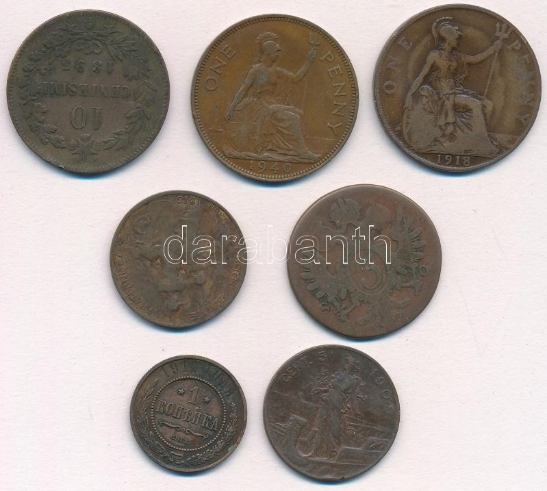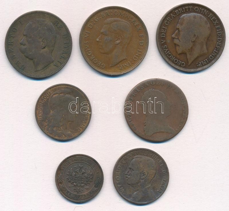 7db-os vegyes külföldi réz- és bronzpénz tétel, közte Olaszország 1909R 5c Cu, Orosz Birodalom 1911. 1k Cu T:2,2-,3