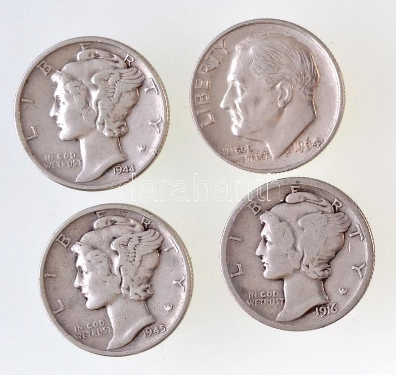 Amerikai Egyesült Államok 1916-1945. 1d Ag (3xdiff) + 1964. 1d Ag T:2,... https://www.darabanth.com/hu/326-Gyorsarveres/326.0/Numizmatika/Kulfoldi-fem-es-ezustpenzek~2000013/Amerikai-Egyesult-Allamok-1916-1945-1d-Ag-3xdiff-plus-1964-1d-Ag-T2-2--USA-1916-1945-1-Dime-Ag~II1814285