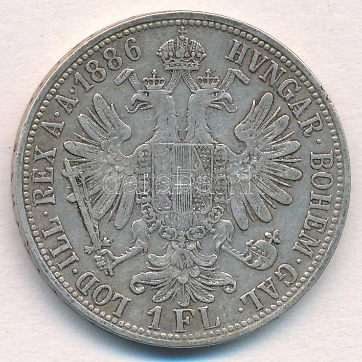 Austria 1886. 1... https://www.darabanth.com/hu/326-Gyorsarveres/326.0/Numizmatika/Kulfoldi-fem-es-ezustpenzek~2000013/Ausztria-1886-1Fl-Ag-Ferenc-Jozsef-T2--Austria-1886-1-Florin-Ag-Franz-Joseph-CVF--Krause~II1814129
