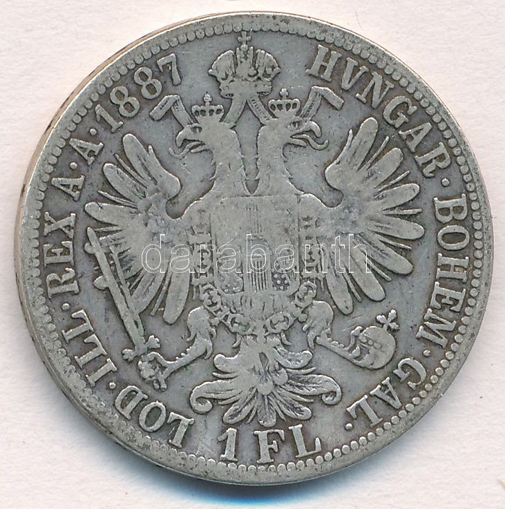 Austria 1887. 1... https://www.darabanth.com/hu/326-Gyorsarveres/326.0/Numizmatika/Kulfoldi-fem-es-ezustpenzek~2000013/Ausztria-1887-1Fl-Ag-Ferenc-Jozsef-T2--Austria-1887-1-Florin-Ag-Franz-Joseph-CVF--Krause~II1814131