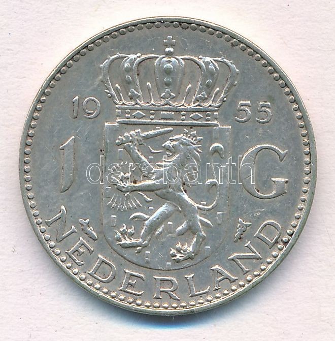 Netherlands 1955. ... https://www.darabanth.com/hu/326-Gyorsarveres/326.0/Numizmatika/Kulfoldi-fem-es-ezustpenzek~2000013/Hollandia-1955-1G-Ag-I-Julianna-T2--Netherlands-1955-1-Gulden-Ag-Juliana-CXF~II1796600