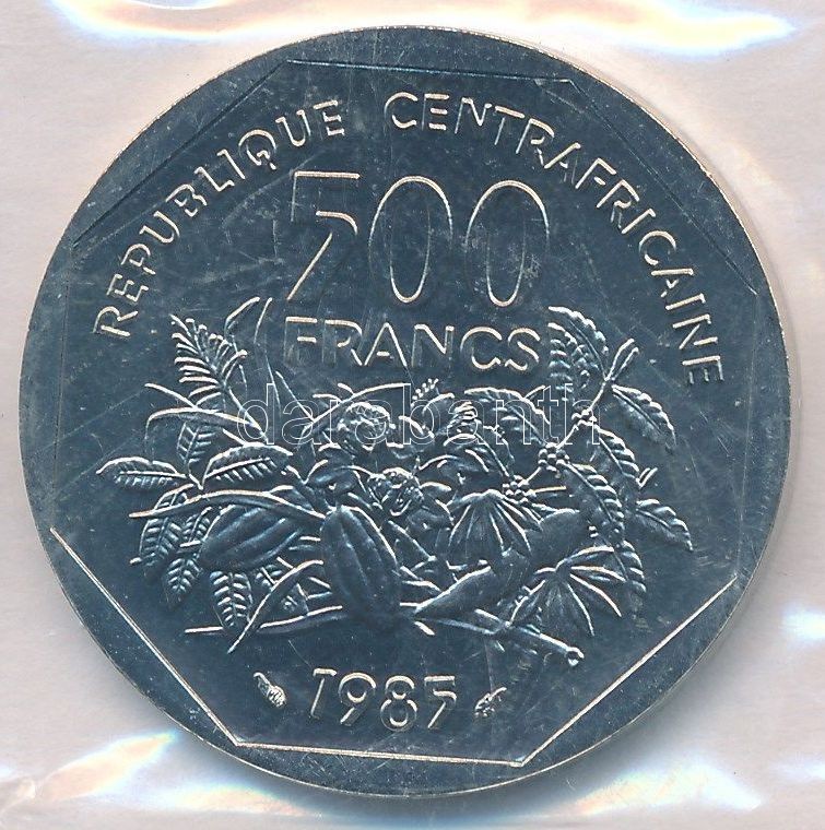 Leírás: Közép-afrikai Köztársaság 1985. 500Fr Cu-Ni próbaveret, lezárt tasakban T:1