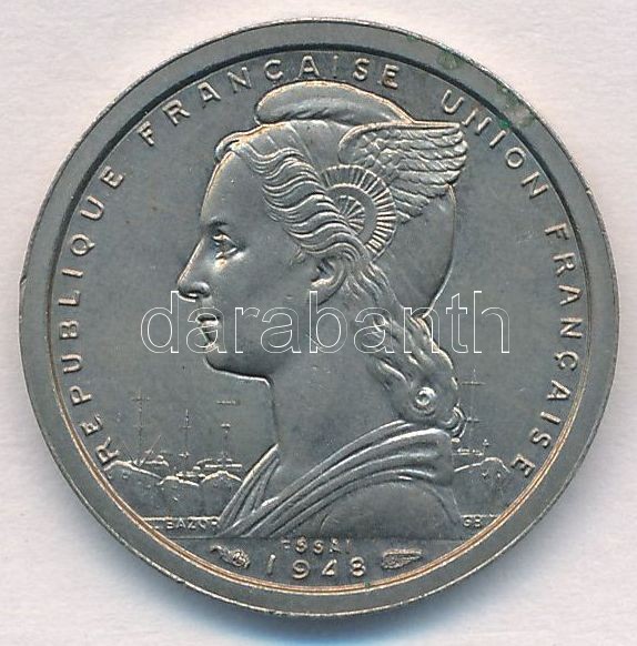 Madag... https://www.darabanth.com/hu/326-Gyorsarveres/326.0/Numizmatika/Kulfoldi-fem-es-ezustpenzek~2000013/Madagaszkar-Francia-gyarmat-1948-1Fr-Cu-Ni-probaveret-T1-1--Madagascar-French-colony-1948-~II1815980