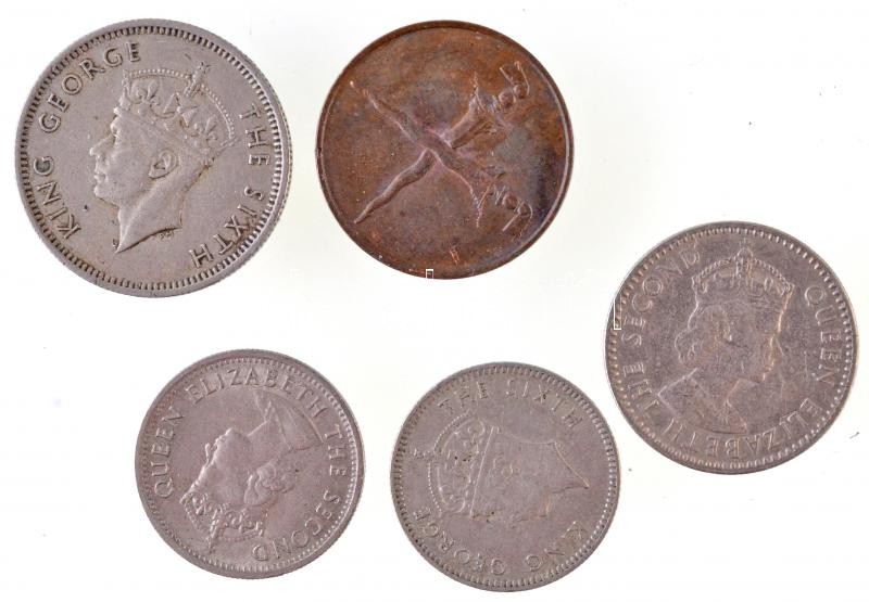 Leírás: Malaya / Brit gyarmat 1948. 5c Cu-Ni + 10c Cu-Ni + Malaya és Brit Borneo 1961. 5c Cu-Ni + 1962. 1c Br + Nigéria / Brit gyarmat 1959. 6p Cu-Ni T:2,2- patina