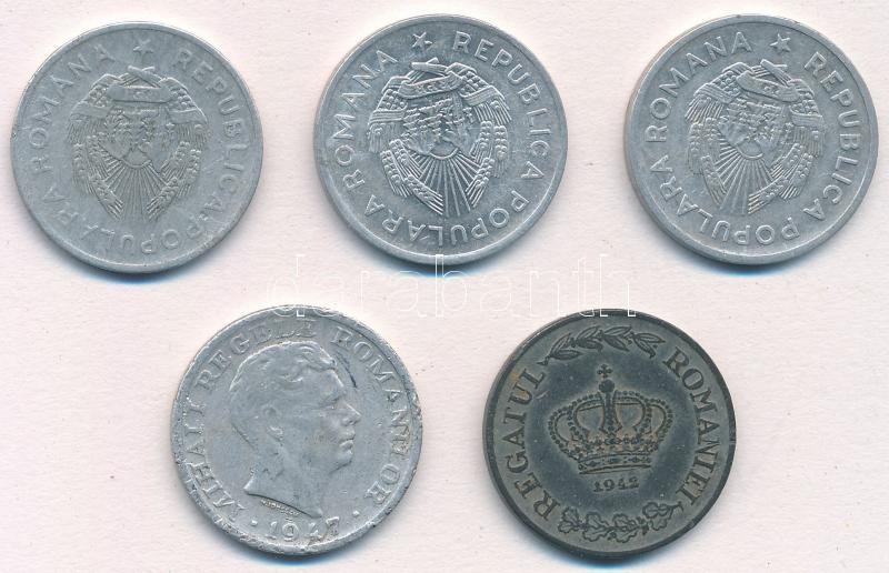 Romania 1942-1950. 5 Lei (5xdiff... https://www.darabanth.com/hu/326-Gyorsarveres/326.0/Numizmatika/Kulfoldi-fem-es-ezustpenzek~2000013/Romania-1942-1950-5L-5xklf-T2-2--Romania-1942-1950-5-Lei-5xdiff-CXF-VF~II1813524