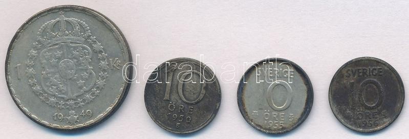 Svédország 1949TS 1K Ag + 1950-1956. 10ö Ag (3xklf) T:2,2-,3 patina