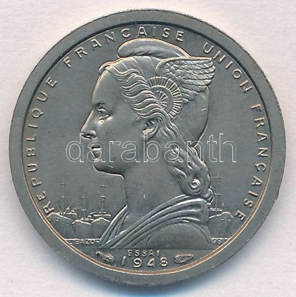 Leírás: Togo / Francia gyarmat 1948. 1Fr Cu-Ni próbaveret T:1,1-