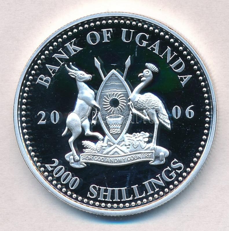 Uganda 2006. 2000Sh Ag "A labdarúgás halhatatlanjainak csarnoka - Libéria 1990-es évek / George Weah" T:PP Uganda 2006. 2000 Shillings Ag "Hall of Fame of football - Liberia 1990s / George Weah" C:PP