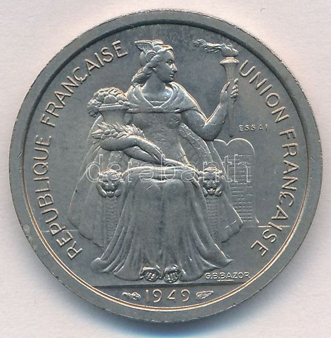New Caledonia 1949. 2 ... https://www.darabanth.com/hu/326-Gyorsarveres/326.0/Numizmatika/Kulfoldi-fem-es-ezustpenzek~2000013/Uj-Kaledonia-1949-2Fr-Cu-Ni-probaveret-T1-1--New-Caledonia-1949-2-Francs-Cu-Ni-essai-CUNC-AU~II1815930