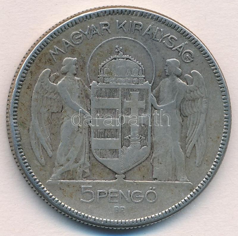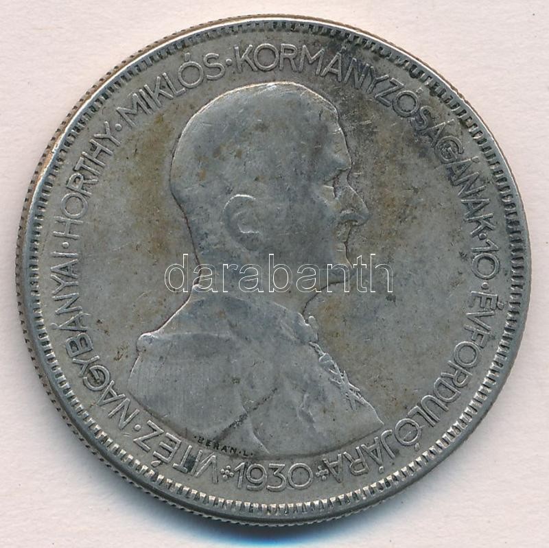 Leírás: 1930. 5P Ag "Horthy jobbra" T:2-,3