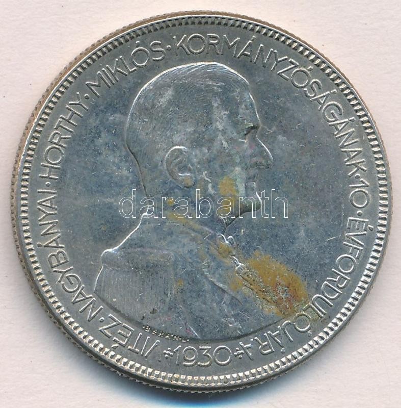 1930. 5P Ag "Horthy jobbra" T:2 fo.