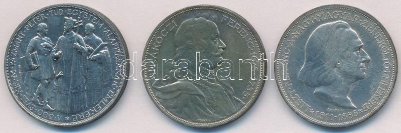 Leírás: 1935. 2P Ag "Pázmány" + 2P Ag "Rákóczi" + 1936. 2P Ag "Liszt Ferenc" T:2 patina Adamo P7.1, P7.2, P7.3