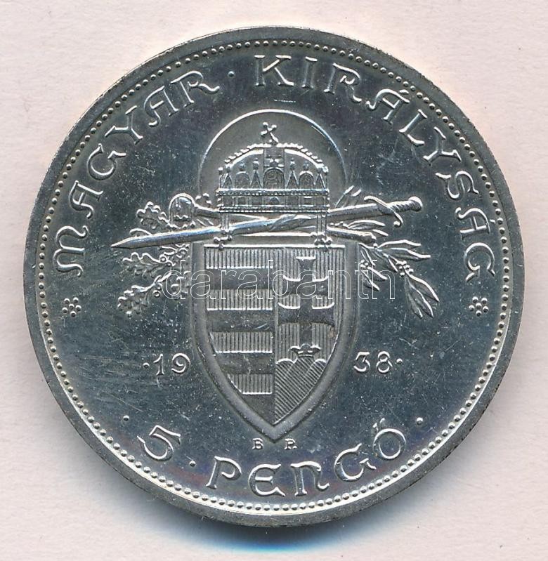Leírás: 1938. 5P Ag "Szent István" T:1-,2 patina