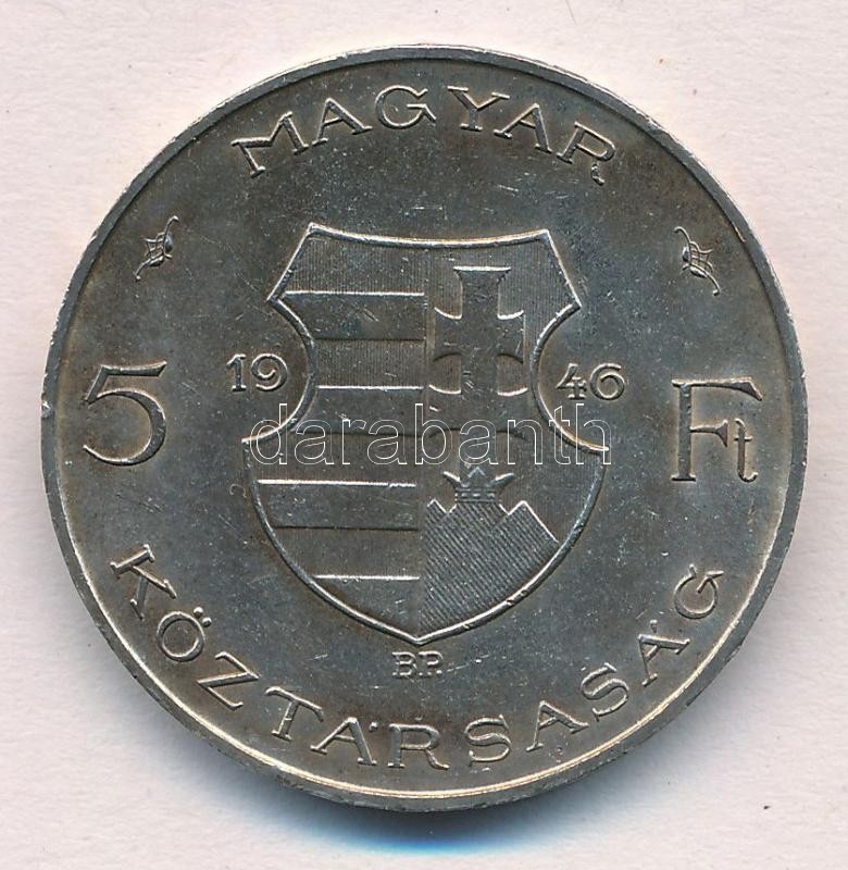 Leírás: 1946. 5Ft Ag "vastag Kossuth" fordított peremirattal T:2 patina, kis ph.