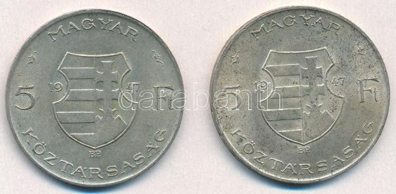 Leírás: 1947. 5Ft Ag "Kossuth" (2x) T:2,2- patina
