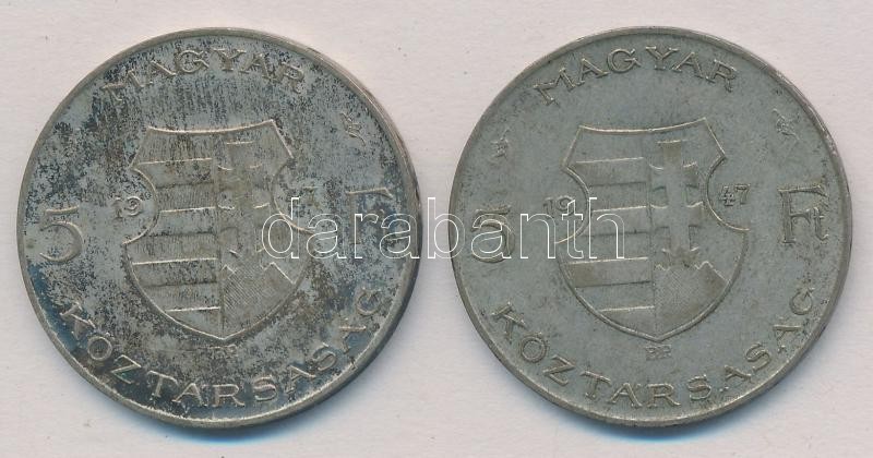 Leírás: 1947. 5Ft Ag "Kossuth" (2x) T:2-,3 patina