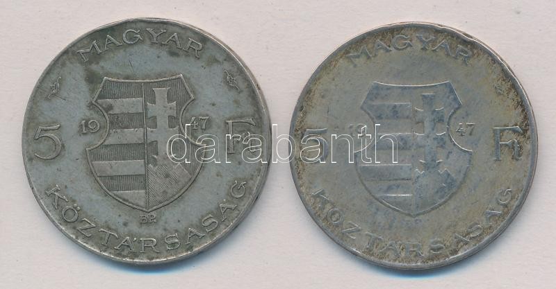 Leírás: 1947. 5Ft Ag "Kossuth" (2x) T:2-,3 patina