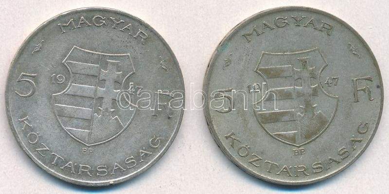 Leírás: 1947. 5Ft Ag "Kossuth" (2x) T:2- patina