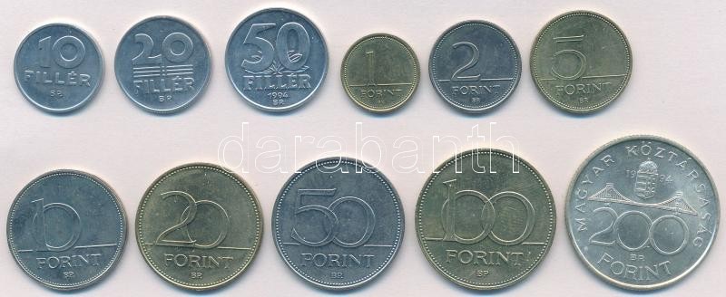 1994. 10f-200Ft (11xklf) forgalmi sorból kiszedett érmékből T:1-,2 https://www.darabanth.com/hu/326-Gyorsarveres/326.0/Numizmatika/Magyar-es-magyar-verdejelu-fem-es-ezustpenzek~2000008/1994-10f-200Ft-11xklf-forgalmi-sorbol-kiszedett-ermekbol-T1-2~II1814934