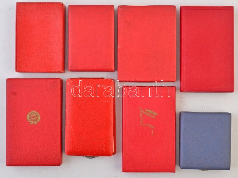 Leírás: 8db üres, szocialista kitüntetésekhez tartozó tok, használt állapotban.