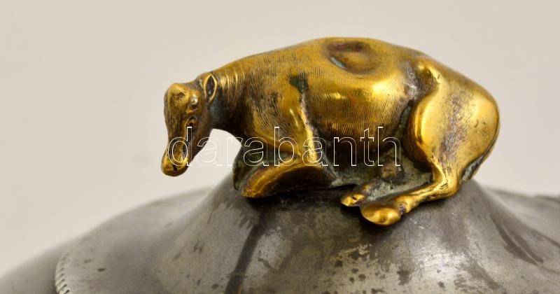 Leírás: James Dixon&Sons Sheffield alpakka kintó réz marha figurás fogóval, jelzett, horpadásokkal, m: 12 cm, h:25 cm
