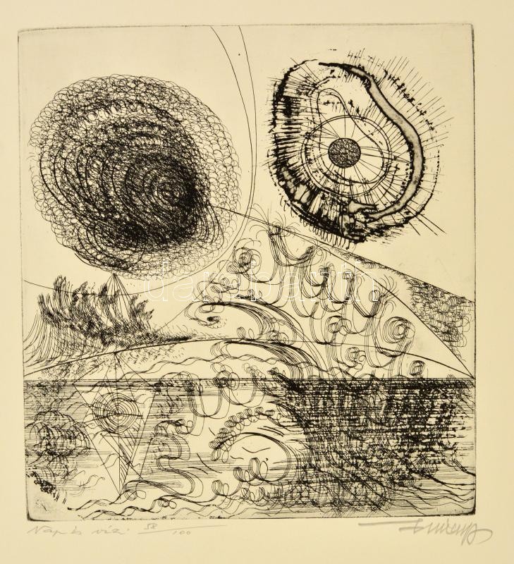 Hincz Gyula (1904-1986): Nap és víz. Rézkarc, papír, jelzett, számozot... https://www.darabanth.com/hu/327-Gyorsarveres/327.0/Festmeny-mutargy-papirregiseg-egyeb/Festmenyek-es-grafikak~1500002/Hincz-Gyula-1904-1986-Nap-es-viz-Rezkarc-papir-jelzett-szamozott-58100-25C39723-cm~II1819991
