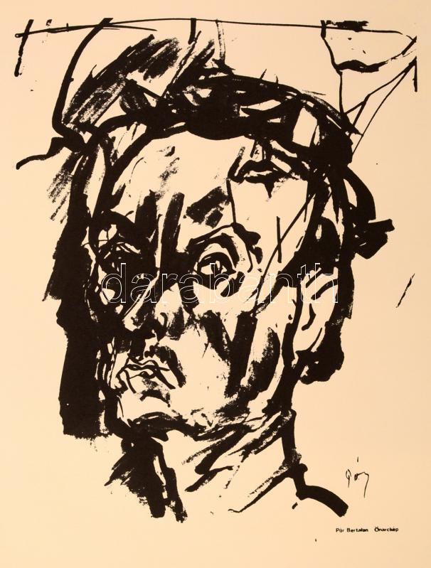 Pór Bertalan (1880-1964): Önarckép. Szitanyomat. Készítette 1979-ben 130 példányban a Pesti Műhely: Bak Imre, Fajo János és Nádler István. Összeáll. Fajo János. 50x68 cm