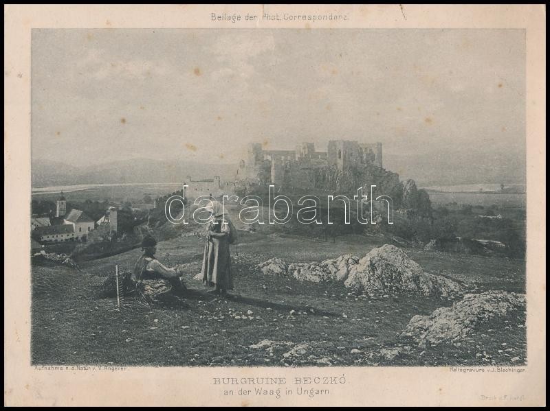 Leírás: cca 1840 Dévény romjai, acélmetszet, foltos, 10x14 cm.+Beckó várának romjai, heliogravűr, körbe vágott, kissé foltos, 10x15 cm.