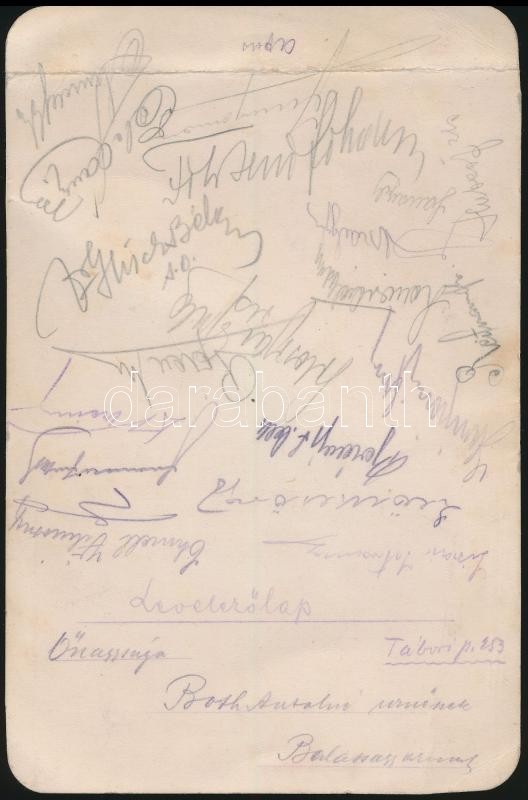 Leírás: 1916 A m. kir. 313. honv. gyalogezred tisztikarának karácsony esti étlapja a frontról, tisztek aláírásával