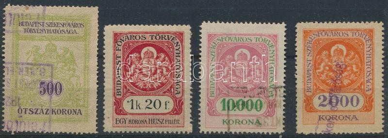 Leírás: Budapest Székesfőváros 1919-1925 4 klf okirati illetékbélyeg (4.250)