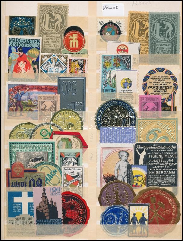 Német levélzáró összeállítás berakólapon / German poster stamps https://www.darabanth.com/hu/327-Gyorsarveres/327.0/Festmeny-mutargy-papirregiseg-egyeb/Parafilatelia~1500014/Nemet-levelzaro-osszeallitas-berakolapon-German-poster-stamps~II1823549