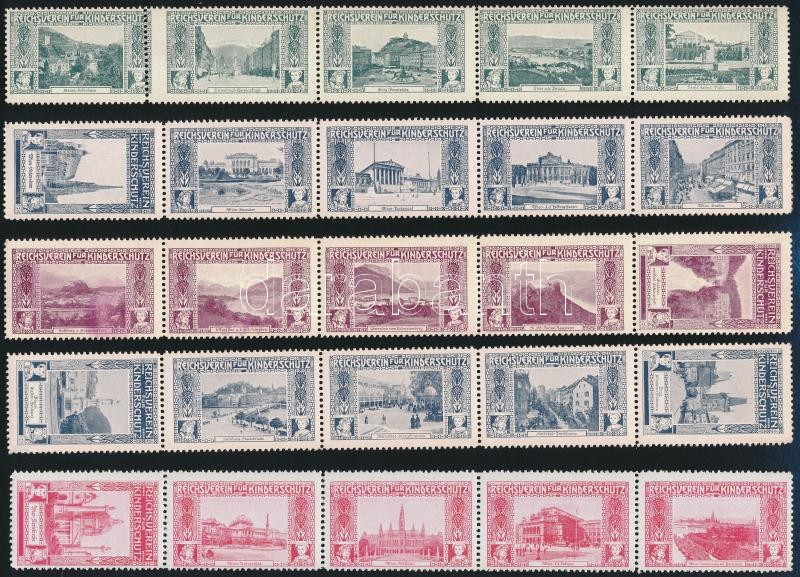 Leírás: cca 1910 Reichsverein für Kinderschutz 5 db ötöscsík segélybélyeg / 25 poster stamps