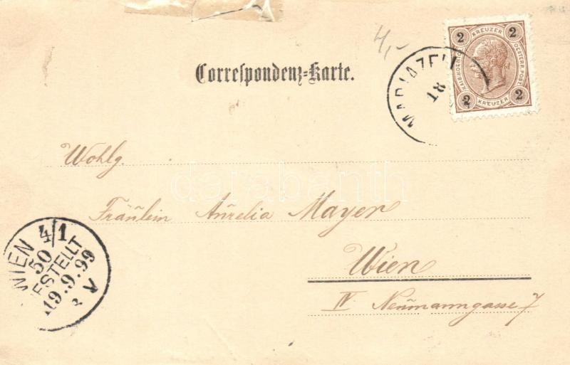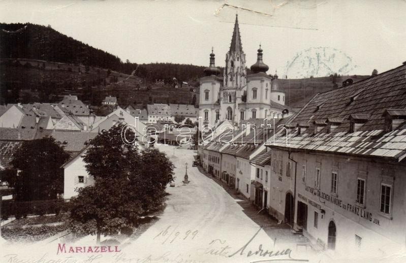 1899 Mariazell, Gasthof zur Goldenen Kanone des Franz Lang jun. / Franz Lang jun.'s hotel and inn, restaurant, shops, Marian basilica, pilgrimage church (r)