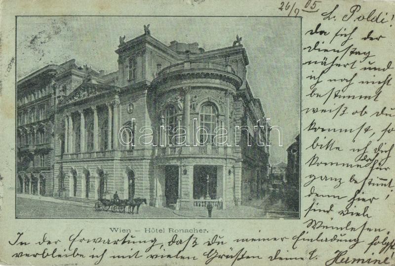 1905 Vienna, Wien; Hotel Ronacher / hotel (EK) https://www.darabanth.com/hu/327-Gyorsarveres/327.0/Kepeslapok/Ausztria~1000019/1905-Vienna-Wien-Hotel-Ronacher-hotel-EK~II1821089