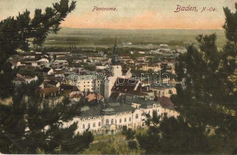 Baden bei Wien, Panorama, K. Ledermann / general view https://www.darabanth.com/hu/327-Gyorsarveres/327.0/Kepeslapok/Ausztria~1000019/Baden-bei-Wien-Panorama-K-Ledermann-general-view~II1820900