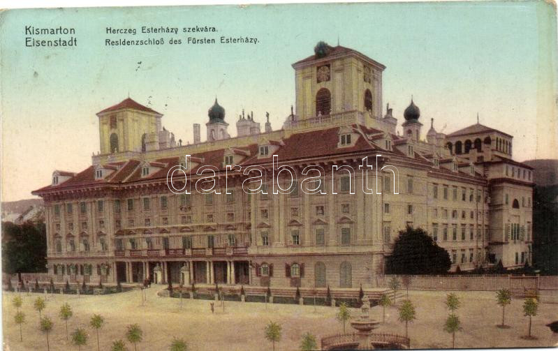 1911 Kismarton, Eisenstadt; Herceg Esterházy székvára. Kern Victor kia... https://www.darabanth.com/hu/327-Gyorsarveres/327.0/Kepeslapok/Burgenland~1000012/1911-Kismarton-Eisenstadt-Herceg-Esterhazy-szekvara-Kern-Victor-kiadasa-castle~II910264